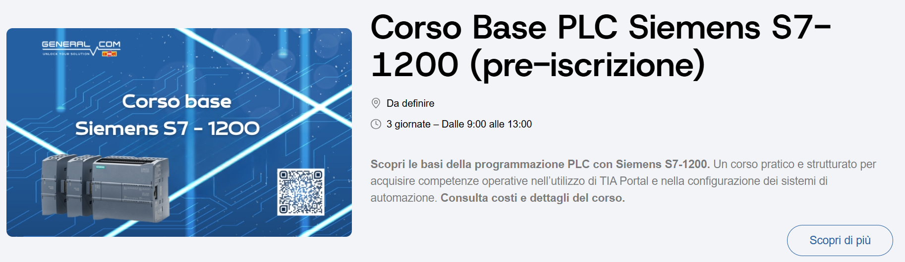 Se sei interessato a un corso specifico in forma privata per la tua azienda, usa il nostro form contatti o invia una mail a corsi@generalcomspa.it