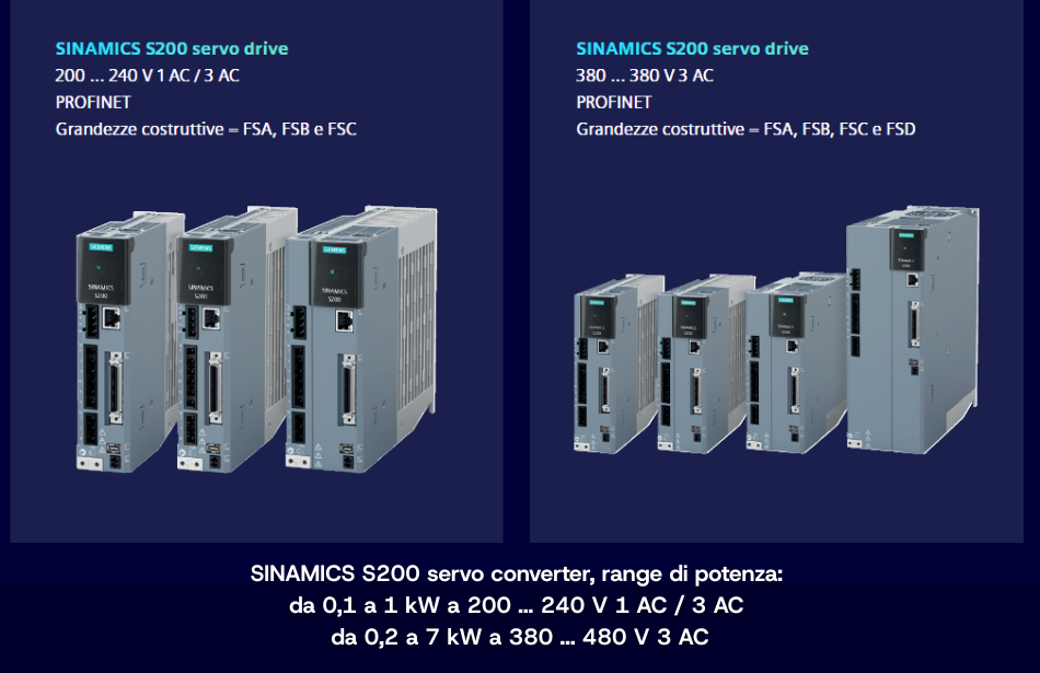 Il SINAMICS S200 è la nuova generazione di servodrive Siemens per applicazioni di Basic Motion Control.